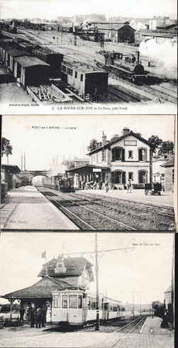 Railway Stations of France 1900s to 1930s, mostly provincial towns and villages, largely platform scenes and near-distance/close-up, most showing trains. (31)