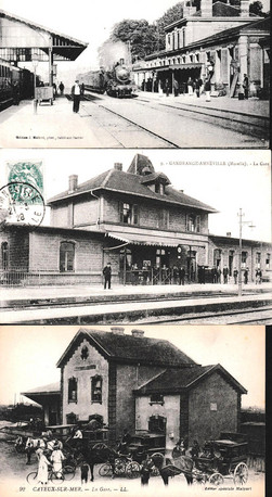 Railway Stations of France 1900s to 1930s, close-up to middle-distance, with WWI ambulance train at Lyon, platform scenes (15) with animated types etc. Mostly medium to small town and village scenes. (29)