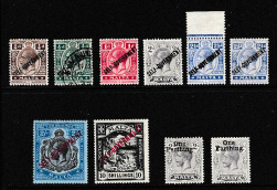 Malta 1922 Self Government script CA set to 10s mostly mint, some with hinge remains, 10s very fine; also One Farthing surcharge mint (2) with a variety. SG 114/122 (10)