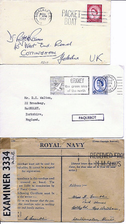 Maritime covers & cards, 1900s to 1970s, many philatelic but including WWI & WW2 Naval mail; interest in Paquebots, Censored, Ships’ Cachets etc. Some unusual items noted. Mixed condition. (97) Also Various pieces.