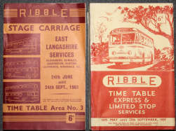 Ribble Bus Company Timetables 1951 to 1979, chiefly 1960s & 1970s, 33 with folding maps, fair to fine. (38)