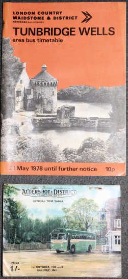 Bus Timetables for Southern England, Cornwall to Kent, 1950s to 1980s, with much 1960s & 1970s, some with maps. Very mixed condition. (44)