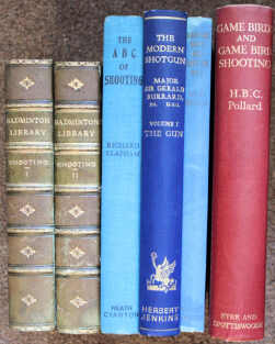 A selection of books on Shooting including Badminton Library two volume set nicely bound in half-morocco with marbled boards & edges. Very good to fine. (6)