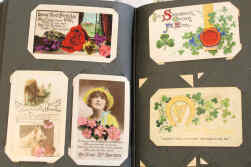 Early 20th Century assortment including PPCs in two old albums, mostly UK views and greetings, plus assorted ephemera, junior stamp album etc. Mixed condition. (100s)