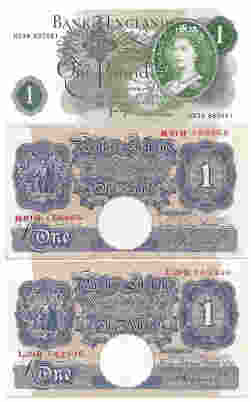 Bank of England banknotes comprising £1 Peppiatt blue (3), 10s Hallam, and £1 Page (3). VG to UNC. (7)