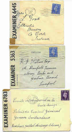 UK Censored mail, mostly WW2 with Examiner labels, including covers to and from Ireland (21), to North America and the Geneva Red Cross. Fair to fine. (33)