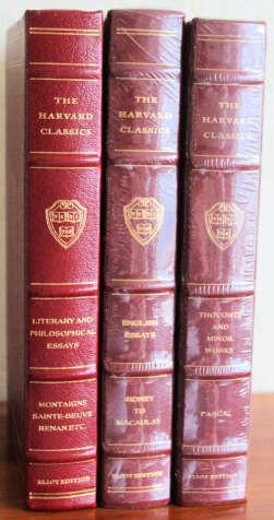 Montaigne & others Literary and Philosophical Works; English Essays, Sidney to Macaulay; and Pascal Thoughts, and Minor Works. Three volumes. Easton Press, Millennium Editions, bonded red leather, gilt, raised bands, gilt-edged, ribbon bookmarkers. Mint condition, two still in shrinkwrap. (3)