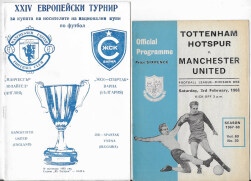 Football Programmes, mostly Manchester United homes including 1965-66 (3), 1966-67 (16), 1967-68 (7, three with tokens removed, plus away programmes v. Southampton and Tottenham); and some later; also 19/10/1983 Spartak Varna v Manchester United (European Cup Winners Cup) and few others. Mostly VG/Fine (36)