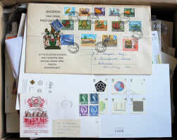 World mix in two albums, two stockbooks and loose, all periods, with main interest in Commonwealth & GB, especially Rhodesia & Canada. Includes useful FDCs. Untidy lot but good catalogue value. (Many 100s)