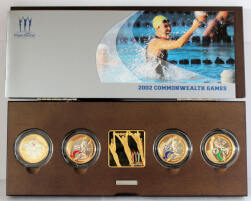 Royal Mint UK 2002 Commonwealth Games £2 Proof Set in gold-plated silver with gold-plated plaque, in issued case, with COA.