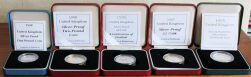 Royal Mint 2003 & 2004 Silver Proof UK Pattern sets in the issued cases together with a duplicate set of the 2003 issue, all with COA. (3 sets)