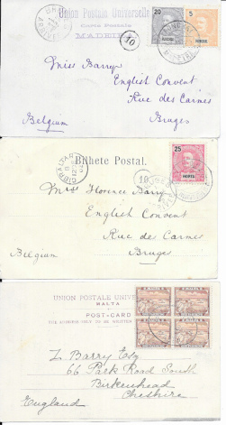 Group of PPCs 1902-03 from Gibraltar (15), Malta (12), Horta (3) and Funchal (7), to Belgium and UK, the cards from Horta routed via Gibraltar. Good to fine. (37)