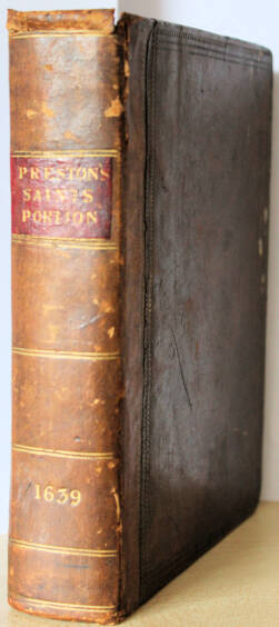 John Preston The New Covenant or The Saints Portion. A Treatise Unfolding the All-sufficiencie of God, Mans uprightness, and the Covenance of grace, Delivered in fourteen Sermons… Nicolas Bourne, London, 1639, 9th edition; octavo, 19th Century full leather, gilt title, head of backstrip pulled; title page marked; final page grimed; approx 35% of the text affected by browning; (16),590,(18)pp