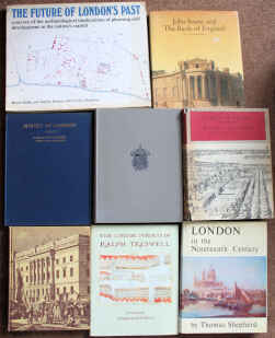 London architecture & surveys, including Schumann-Bacia John Soane and The Bank of England 1991; The London Surveys of Ralph Treswell 1987; Survey of London Volumes XXX, XXVIII (Brooke House) & the Plan Pocket for Vol. XXIX & XXX; plus Chettle The Queen's House, Greenwich 1937. VG/VF (17)