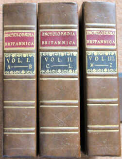 Encyclopaedia Britannica; or, a Dictionary of Arts and Sciences 1771, facsimile of the first edition in 3 vols, in gilt leatherette bindings.