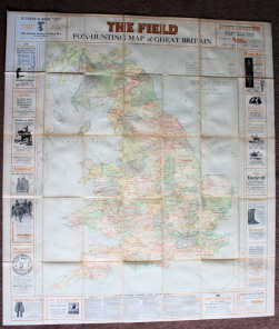 The Field ‘Fox Hunting Map of Great Britain', 1930s, linen-backed, dissected folding map, 44” x 38.5”, advertisements at periphery, front board & backstrip detached.