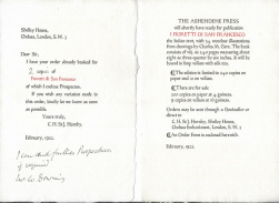 The Ashendene Press 1922-24 Publicity Sheets (4), a letter counter-signed by W.W. Downing, two unused order forms and a short note. Fine (8 items)