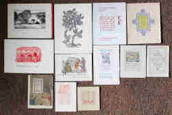 Small books & pamphlets, many private press, UK & American, including Shakespeare Head Press (4), The Society of Wood Engravers (2), Curwen Press, Whitehead & Alliger, William E. Rudge's Sons, E. Grabhorn (San Francisco), Rampant Lions Press, James & Beatrice Masters, De la More Press (3), etc. Also two greetings cards and a menu. 1900s to modern, all periods represented. Good to VF (34 items)