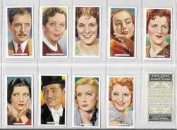 Entertainers cigarette card sets in modern album, including Ardath Film, Stage and Radio Stars; Hill Music Hall Celebrities; Gallaher sets (3); Phillips Characters Come to Life; Mitchell Stars of Screen & History; Carreras Film Favourites; Sarony Cinema Studies; Edwards Ringer & Bigg Cinema Stars 1923 (both standard and L size sets); and Wills Radio Celebrities first & second series. Largely VG/VF. Cat (Murray) £650 (14 sets)