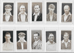 Cricket 1920s/30s sets with Ogden's Cricket 1926 (excellent), Player Cricketers Caricatures by ‘Rip' (good to excellent), and D.C. Thomson The World's Best Cricketers 1932, black backs (mostly excellent, a few good/VG). (132)