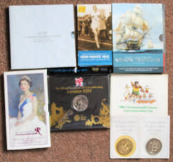 UK Decimal uncirculated, mostly commemorative in packs, with many Five Pound coins, several with a proof finish. Face value £70