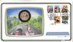 UK 2019 ‘Wallace & Gromit' 50 pence Gold Proof, 22ct, inset in a related commemorative cover, with certificate. Coin weight 15.5grms
