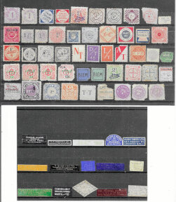 Booksellers' Tickets (15) from 19th Century, and Mechanical Music Copyright Payment and Purchase Tax stamps (52) arranged on stockcards.