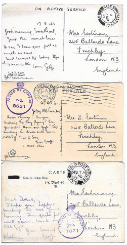 WW2 PPCs from Algeria (12) and Tunis (1), 1943-44, sent by a British serviceman to his wife in Finchley. One readdressed. Good to fine. (13)