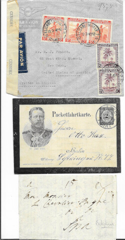 Postal History mix, pre-stamp to 1960s, chiefly Belgium & Belgian Congo including 1920-22 (5) with ovpt. stamps for Eupen or Malmedy, WW2 Censors, airmails, express, etc. Also 1888 Berlin Local Post card VGU. (50)