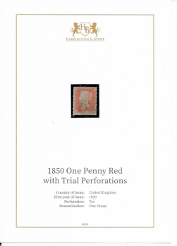 Great Britain 1850 1d Red-Brown, good used, with trial perforation 16 by Henry Archer; with Harrington & Byrne certificate of authenticity. SG16b