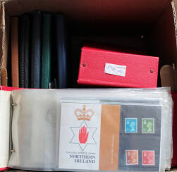 Great Britain ranges in albums & stockbooks, chiefly UM QE2 including 1968-81 Presentation Packs (118) plus few special packs, an album of FDCs with few better noted, UM Wildings, Machins & Regionals etc. Also some foreign stamps. (Some 100s)