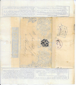 Great Britain 1840 1d Mulready Wrapper, stereo A42, VGU Oct. 1841 from London to Aberdeen with an emphatic Maltese Cross cancel. Internally the wrapper shows the printed letter-head of Samuel Hanson & Son, fruit importers. Light toning.