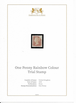 Great Britain 1840 Penny Rainbow Colour Trial in deep red-brown, on thin paper, skilfully repaired and laid down on thin card.