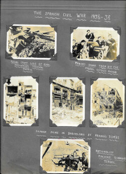H.M.S. Hood, on tour, 1936-1939: a collection of photographs, 2.5 x 3.5” to PC size, including a group of Spanish Civil War (18) centered on Barcelona, the remaining photos either topographical or relating to the Hood and other British Naval ships. Arranged in album, with corner mounts, each photo with hand-written caption, the album damaged, pages loose, photos fine. (131)
