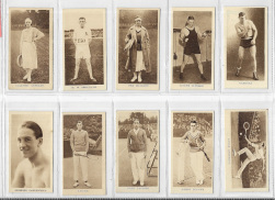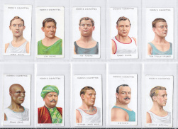 Ogden's Pugilists and Wrestlers 1908 (1 to 50), a good to fine set, some with rounded corners, some with album corner marks including John L. Sullivan, #50 with dents at foot. (50)