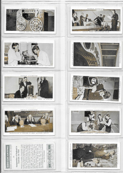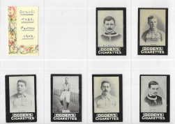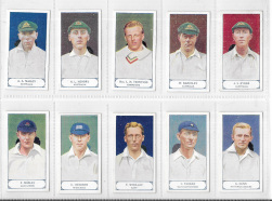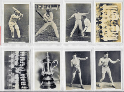 Ogden's sets in modern album comprising Prominent Cricketers of 1938 (fine/excellent), Boy Scouts 1911 (fair to VG), Broadcasting, Sea Adventure, Marvels of Motion, Actors Natural, Famous Dirt-Track Riders, and By the Roadside. Mainly VG to VF. (8 sets)