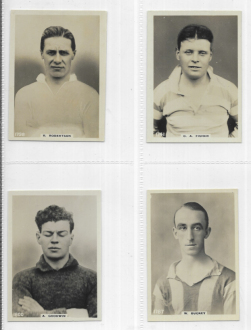 Godfrey Phillips Footballers 1922, size L, Pinnace backs, a selection of 36 different, mostly VG/VF, two with small marks on back. Comprise #1319, 1653, 1664, 1741, 1787, 1798, 1800, 1806, 1807, 1808, 1809, 1813, 1832, 1833, 1835, 1836, 1837, 1838, 1864, 1887, 1974, 1975, 1976, 2114, 2119, 2156, 2162, 2223, 2252, 2253, 2254, 2258, 2259, 2286, 2424, and 2425. (36)