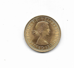 UK 1959 Sovereign, tiny nick in rim, near EF