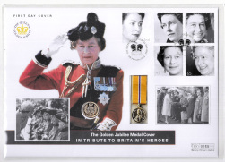 UK 2002 Half-Sovereign inset in a Golden Jubilee first day cover together with a miniature medallion.