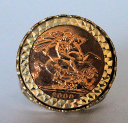 United Kingdom 2000 Half-Sovereign set in a 9ct gold ring, in a Fraser Hart gift box.