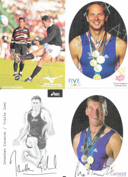 Sport Personalities, a selection of Autographed photos, pages, letters etc, including Geoff Capes, Gavin Hastings, Sally Gunnell, Steve Redgrave, Linford Christie, Jonathan Edwards, Matthew Pinsett & various others. (36)