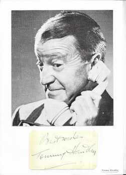 Radio entertainers, a collection of cut signatures in a binder, matched with related pictures, including Jack Payne, Tommy Handley, Jack Train, Ben Lyon, Bebe Daniels, Jimmy Jewel & Ben Warris, Henry Hall, Vera Lynn, Charlie Chester, Jimmy Edwards, Peter Brough, Eamonn Andrews and others. (39)