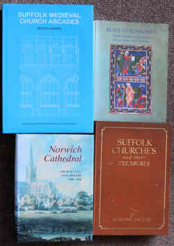 Gransden Bury St. Edmunds Medieval Art, Architecture, Archaeology and Economy 1998; Haward Suffolk Medieval Church Arcades 1993, in d/jkt; Norwich Cathedral: Church, City and Diocese 1096-1996 in d/jkt; Cautley Suffolk Churches and their Treasures 1937; and others, Norfolk & Suffolk related. (19)
