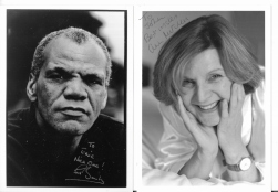 Album of autographed photos of entertainers, TV presenters, etc, PC size, including James Garner, Cicely Courtneidge, Nigel Hawthorne, Lee Evans, Tom Courtenay, Nigel Davenport, Richard Wilson, Edward Fox, Ian Holm, Richard Briers, Michael Crawford, George Sewell, and other well-known. (64)