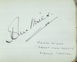 Autograph album of 1930s/40s entertainers with signatures of John Mills, Robert Helpman, Leslie Howard, Margot Fonteyn, Jack Buchanan, Lilian Braithwaite, Michael Somes, Constant Lambert, Jack Hulbert, Robertson Hare and several others. Album damaged, pages loose.