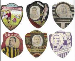 J. Baines – Sport. A collection of the shaped cards in modern album, with main interest in Rugby, plus some soccer & few other sports and a small number of Boer War period patriotic. Countrywide with some emphasis on Lancashire clubs, Scotland, and some County teams, together with a few New Zealand. Mixed condition. (129)