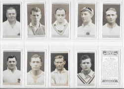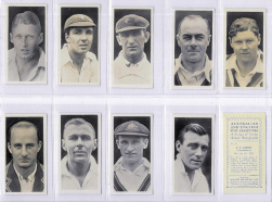 Cricket interest with Carreras Cricketers 1934, the set of 30, #1 slightly marked on back, others VG to excellent; and Churchman Cricketers 1936, set of 50, VG/excellent. Also a modern set by John Brindley. (110)