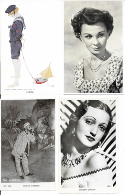 Edwardian to 1920s collection in old album, mostly beauties and actresses, plus few later including Laurel & Hardy. Mainly good to fine. (289). Also two photo albums.
