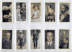 Player's sets in two modern albums including Riders of the World, Countries' Arms & Flags 1905, Racing Yachts, Kings & Queens of England (both standard and scarcer L size sets), Celebrated Gateways, Cricketers 1930, Napoleon, Counties and their Industries 1915, Victoria Cross, Cricketers 1938, Old Hunting Prints and Polar Exploration 2nd series. Good to VF, mostly VG/VF. Cat (Murray) £1100. (22 sets)