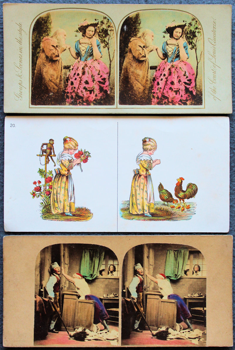 19th Century Stereographs and few later, mostly photographic with play-scenes, sentimental, comic,
